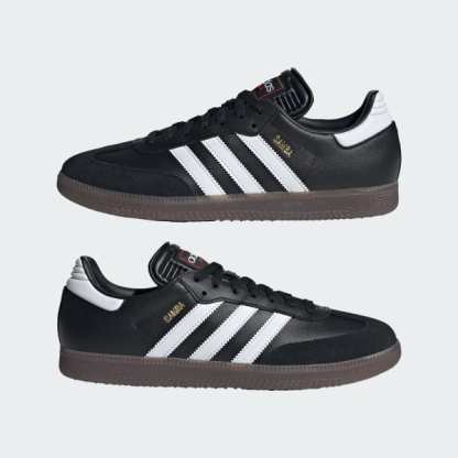 When your skills need to shine on indoor courts, lace up adidas Samba cleats. With decades of soccer heritage behind them, they'll keep you comfortable with a soft leather upper featuring suede overlays for added abrasion resistance. A rubber outsole provides biting grip to help you change direction on a dime, and an EVA insole helps smooth out every sprint.
